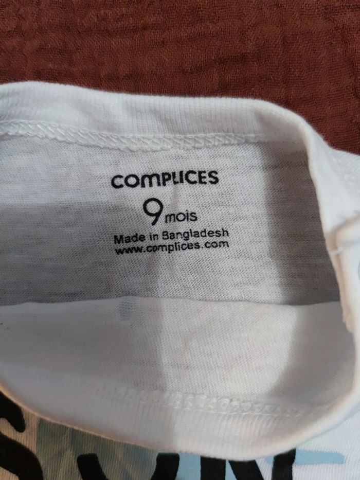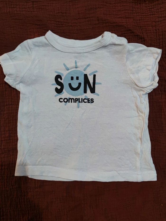 Vends t-shirt blanc Sun Complices Taille 9 mois Jamais porté Ouverture dans le col Sans tâche ni trou 🎁 Un cadeau offert pour toute commande + un cadeau supplémentaire par tranche de 10€ d'achat (hors frais de protection et frais de port)