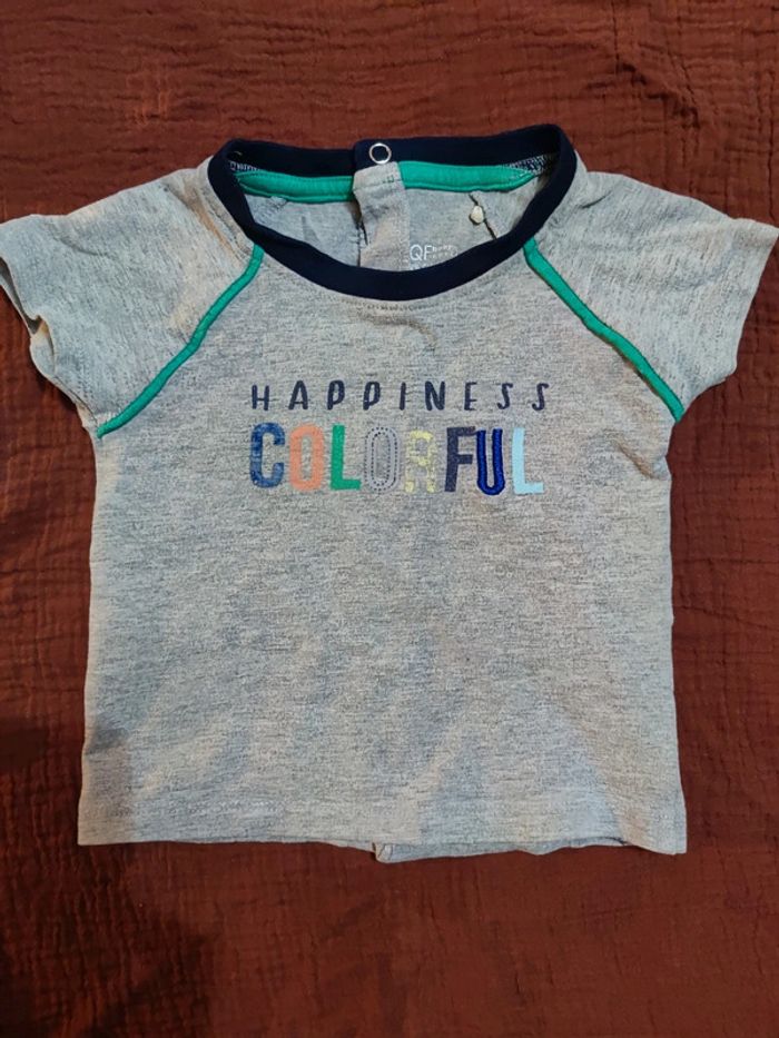 Vends ensemble t-shirt et short gris hapiness colorful Short : Primark T-shirt : TQF baby T-shirt : ouverture dans le dos Short : taille élastique Taille 6-9 mois Porté 1 ou 2 fois Sans tâche ni trou 🎁 Un cadeau offert pour toute commande + un cadeau supplémentaire par tranche de 10€ d'achat (hors frais de protection et frais de port)
