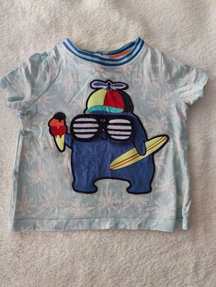 T-shirt bleu ciel surfeur Taille 6 mois Du pareil au même Ouverture dans le dos Jamais porté Pas de tâches ni trou 🎁 Un cadeau offert pour toute commande + un cadeau supplémentaire par tranche de 10€ d'achat (hors frais de protection et frais de port)