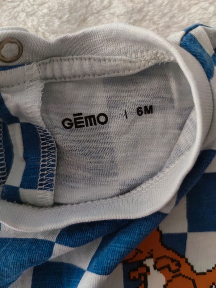 T-shirt damier blanc et bleu dinosaure skateboard Gémo Taille 6 mois Ouverture dans le dos Porté 1 ou 2 fois Pas de tâches ni trou 🎁 Un cadeau offert pour toute commande + un cadeau supplémentaire par tranche de 10€ d'achat (hors frais de protection et frais de port)