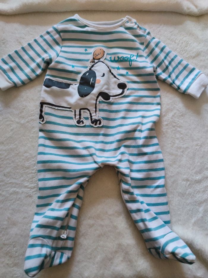 Vends léger pyjama chien wouf taille 3 mois Tex Jamais porté Pas de trou ou de tâches Ouverture par le bas 🎁 Un cadeau offert pour toute commande + un cadeau supplémentaire par tranche de 10€ d'achat (hors frais de protection et frais de port)