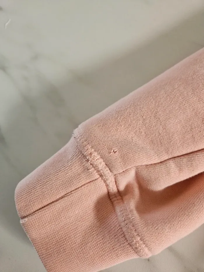 De couleur saumon. Je ne trouve pas la taille mais les dimensions se trouvent trouvent sur les photos. Porté en bon état il possède quelques défauts montrés sur photos