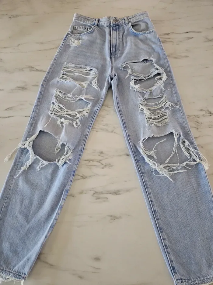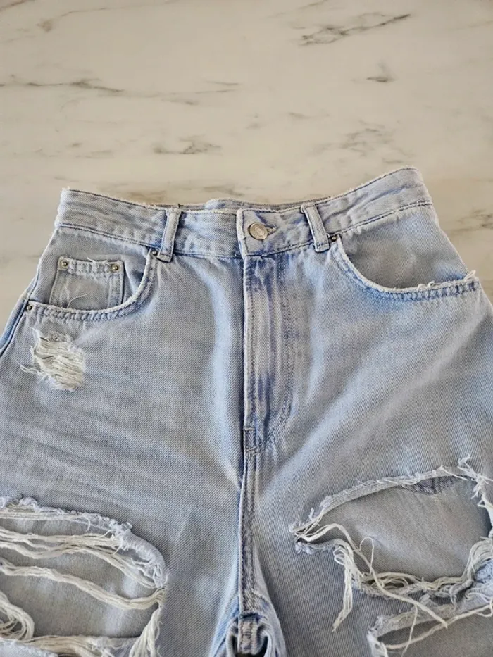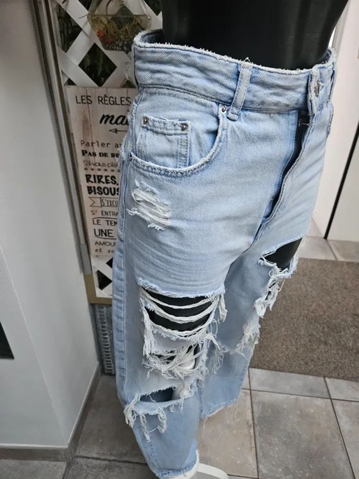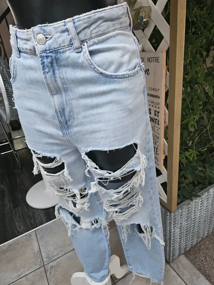 Bershka jeans Mom taille haute à trous taille 36 - photo numéro 1