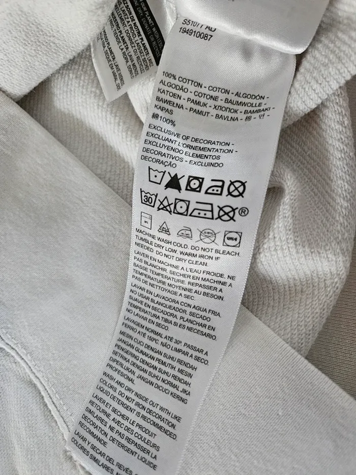 Porté il reste quand même en très bon état mais je n'ai plus le cordon. Pour taille S ou M tout dépend si vous voulez le porter ample. Les dimensions se trouvent sur les photos il est mixte