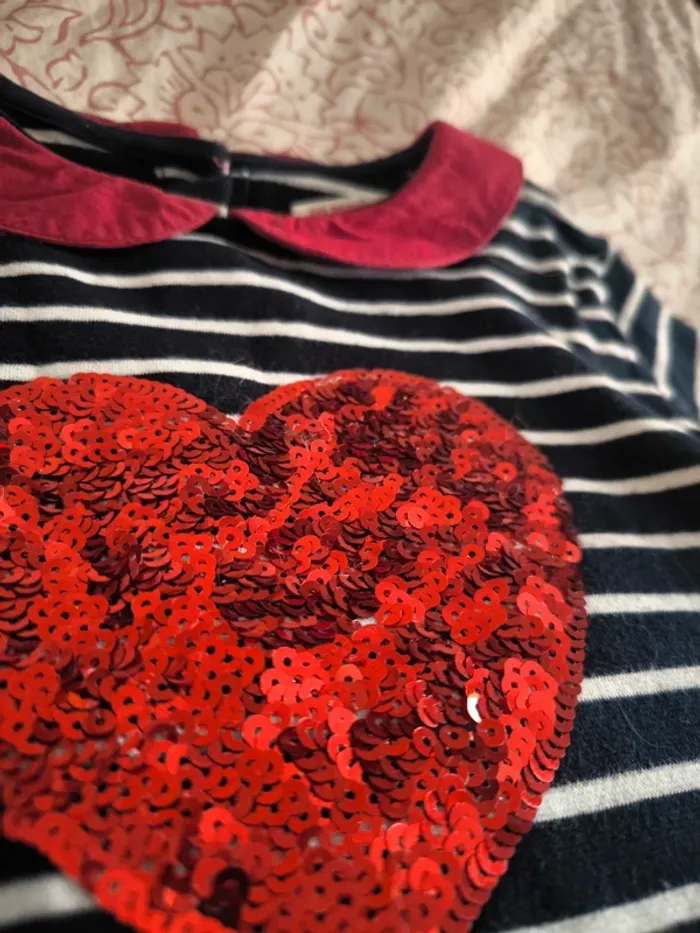 Robe rayée sequin du pareil au même . Petit col claudine . 8 ans #dressingelphye8ans