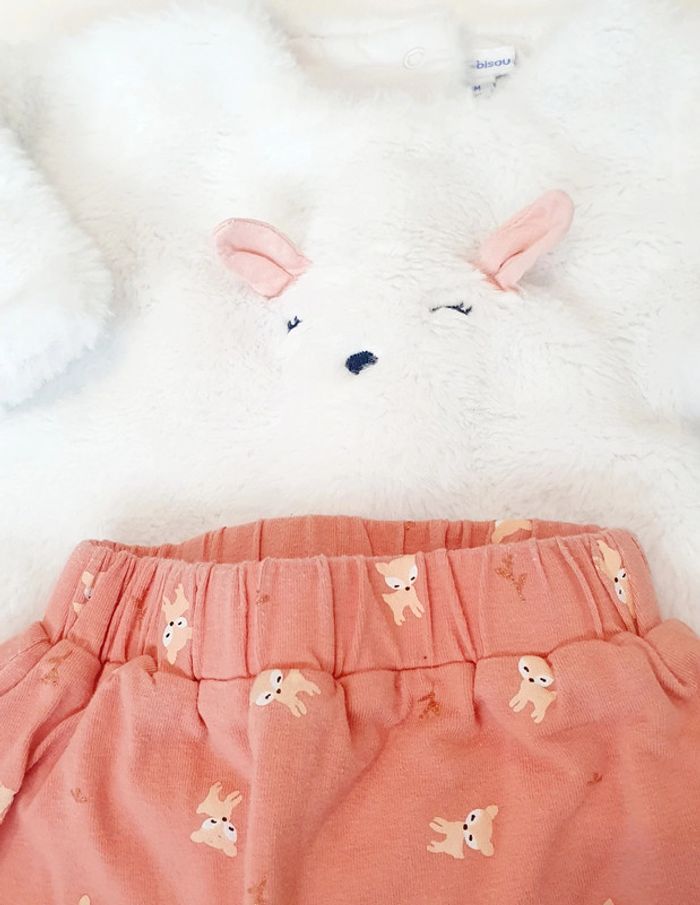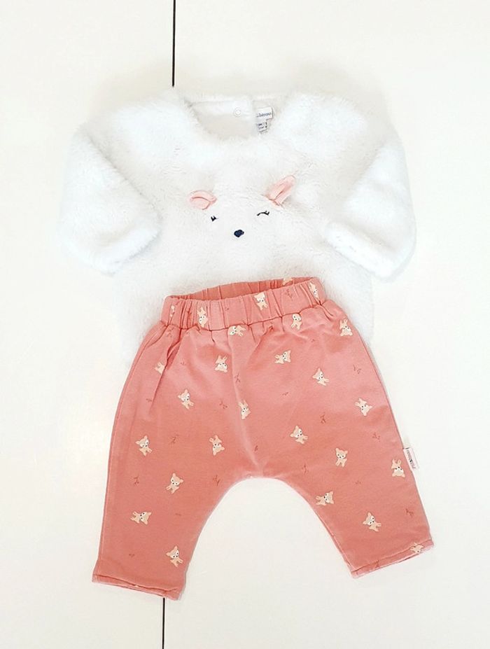 Ensemble P'tit Bisou avec pull blanc duveteux et pantalon rose - Taille 1 mois
