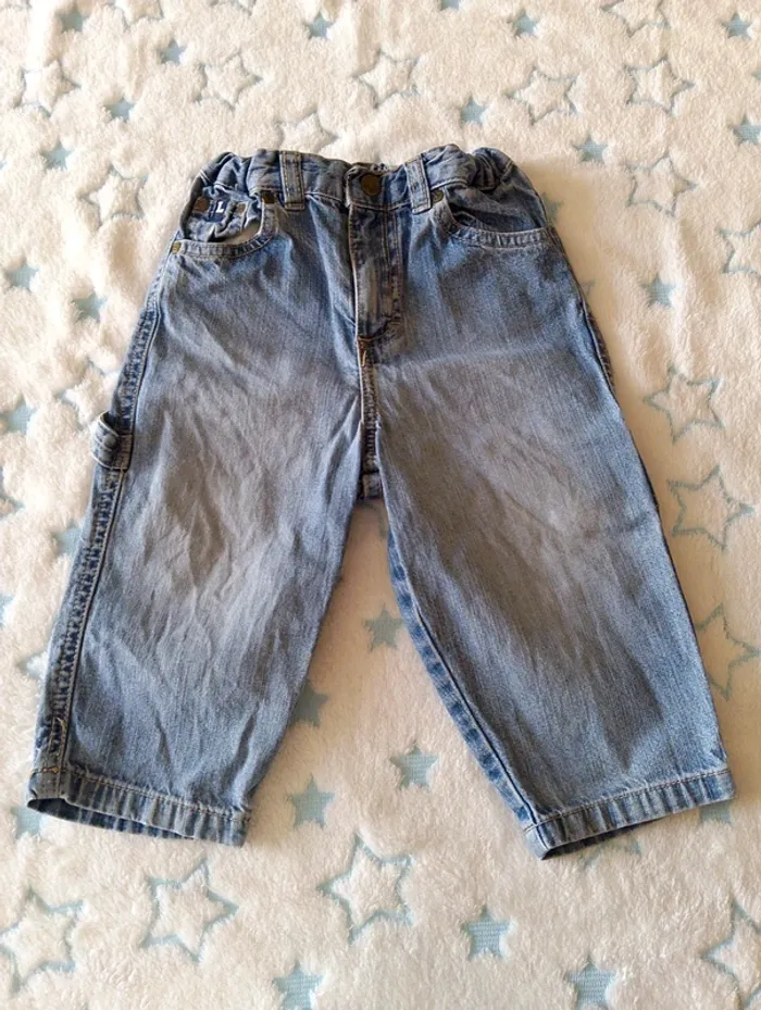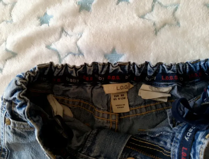 Jean H&M L.O.G.G Baby 9-12M/80cm. 100%coton. Souvent porté tout petit trou a l'arrière du jean au niveau de la ceinture voir photo 5 et bad du pantalon un peu abîmé également voir dernière photo.