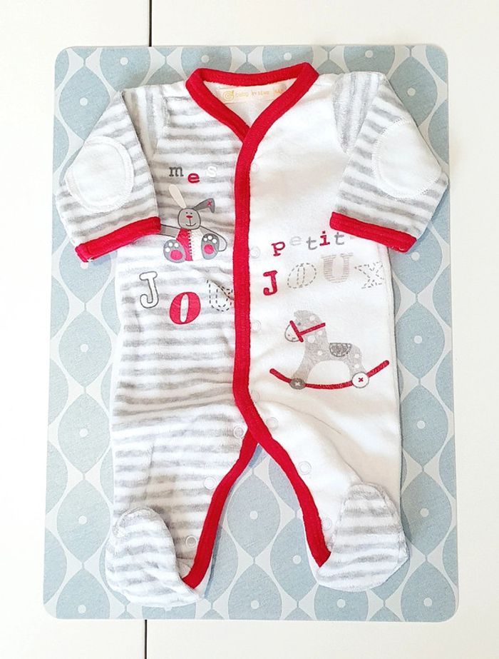 Pyjama en velours gris/blanc/rouge Gemo - Taille naissance