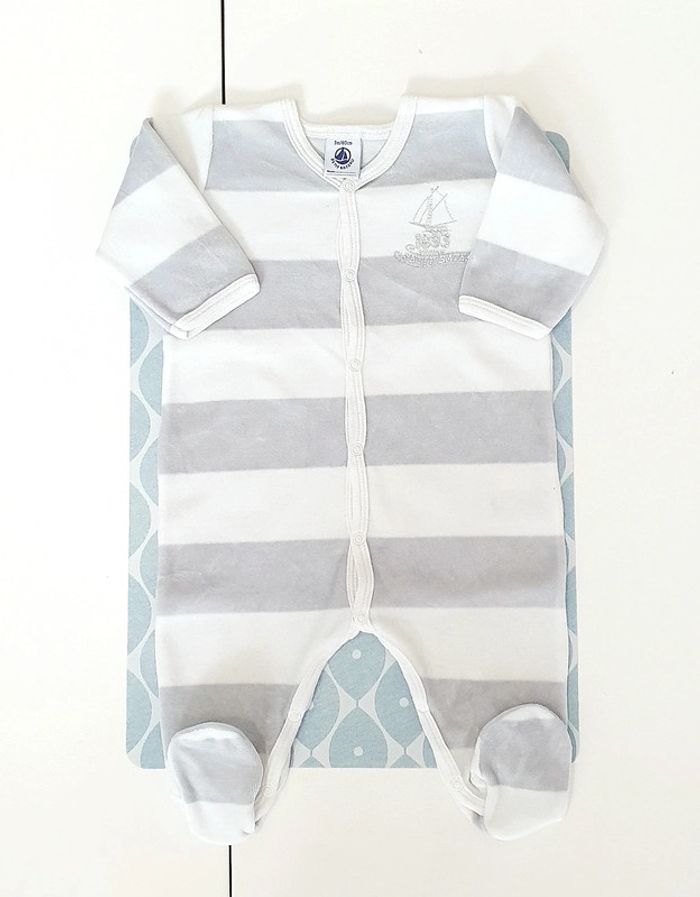 Pyjama en velours blanc/gris Petit Bateau - Taille 3 mois