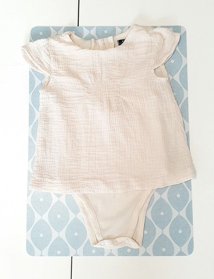 Chemisier Kiabi en gaze de coton creme avec body integré - Taille 9 mois