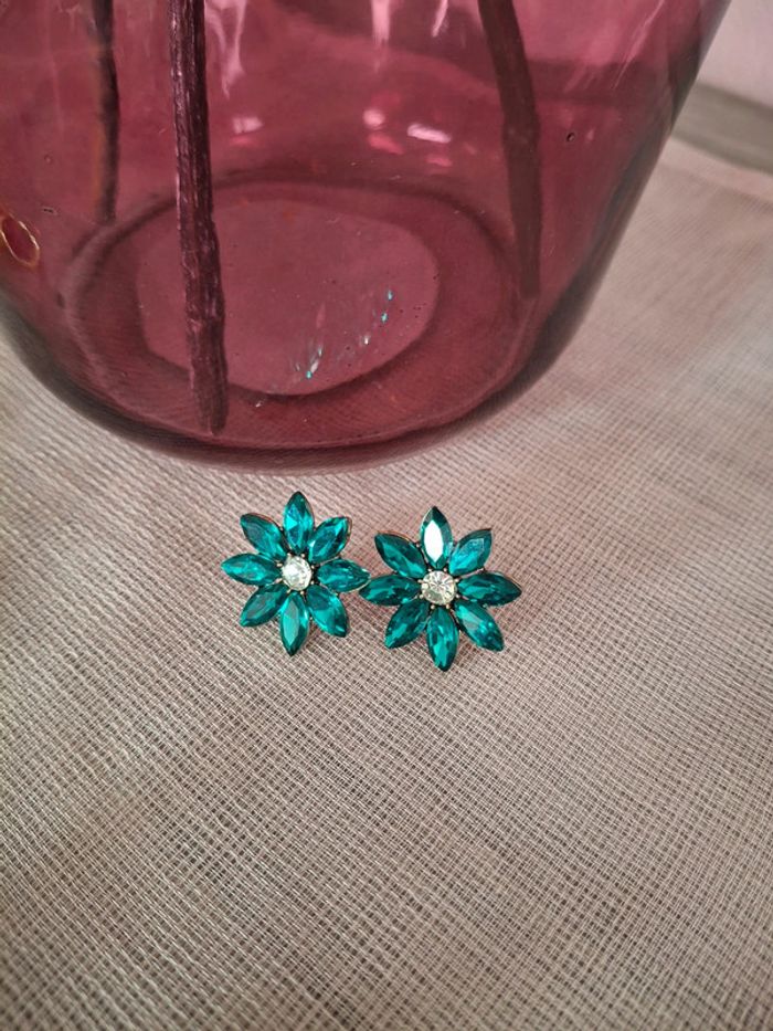 Boucles d’oreilles fleurs vertes - neuves sans étiquette - photo numéro 1
