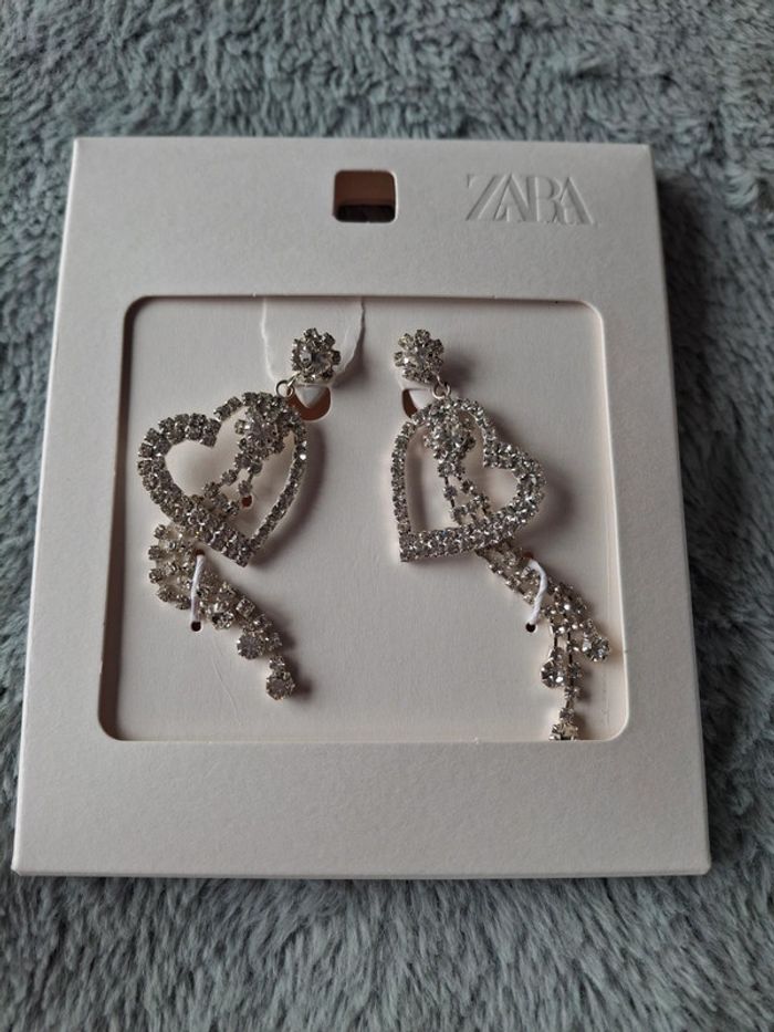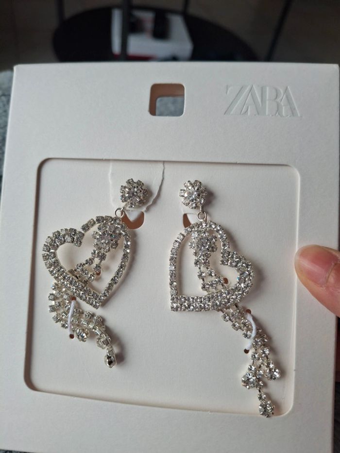 Magnifiques boucles d'oreilles pendantes en strass coeur Couleur argent Marque Zara Neuves avec étiquettes Fantaisie Photo 1 générée par photomontage. Les boucles d’oreilles n’ont jamais été portées #clau_d1a #clau_d1a_accessoires #clau_d1a_soiree État : neuf Matériau : métal et strass argentés Fermoir : clous d’oreilles Dimensions : 4cm ou + Idéal pour : mariages, bal, soirée Prix : 15€ négociable ✈️ expédition rapide et soignée ⛔️ retours non acceptés