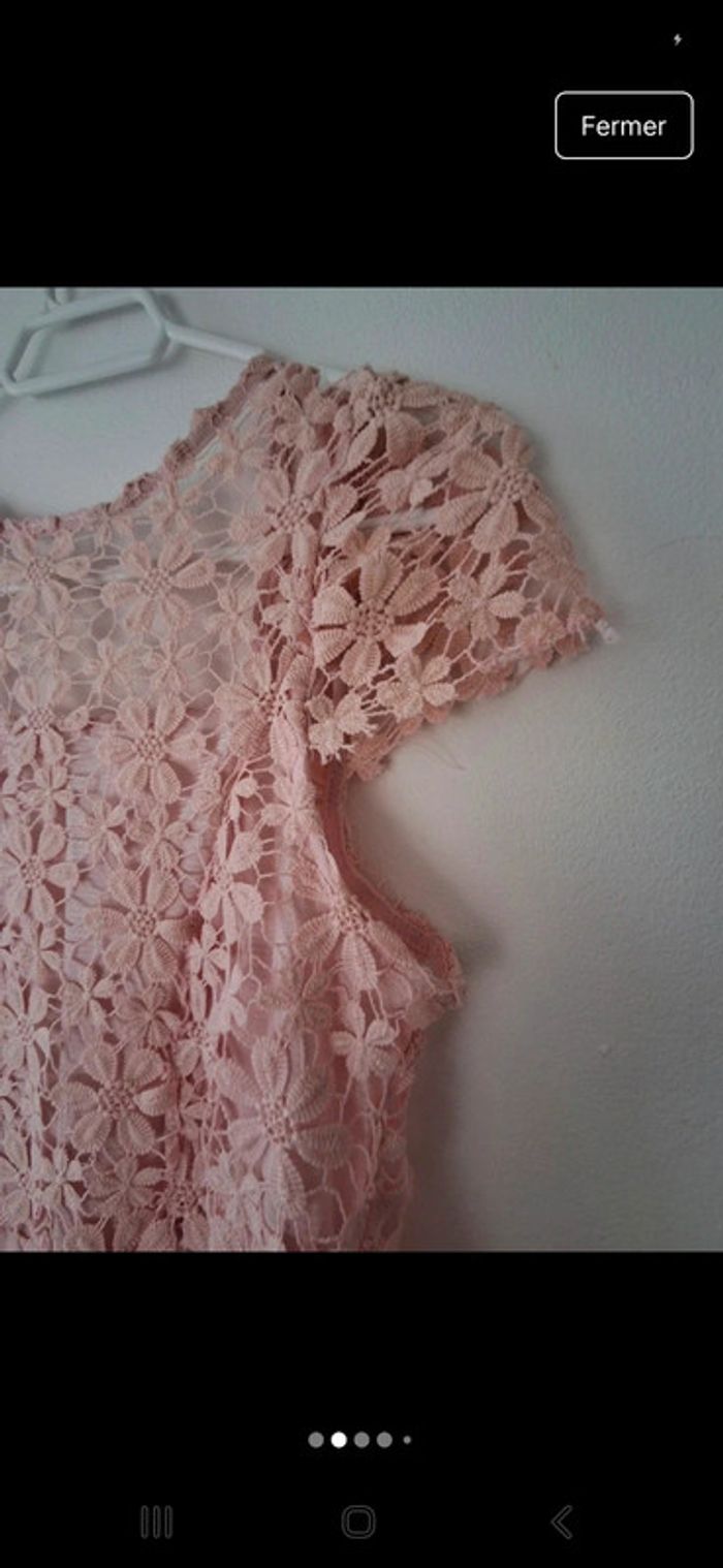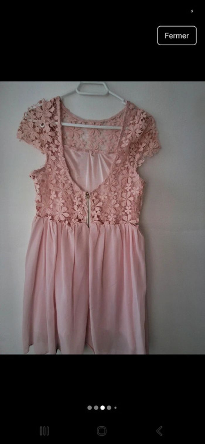 Très belle robe rose poudré dentelle et mousseline - très bon état - photo numéro 4