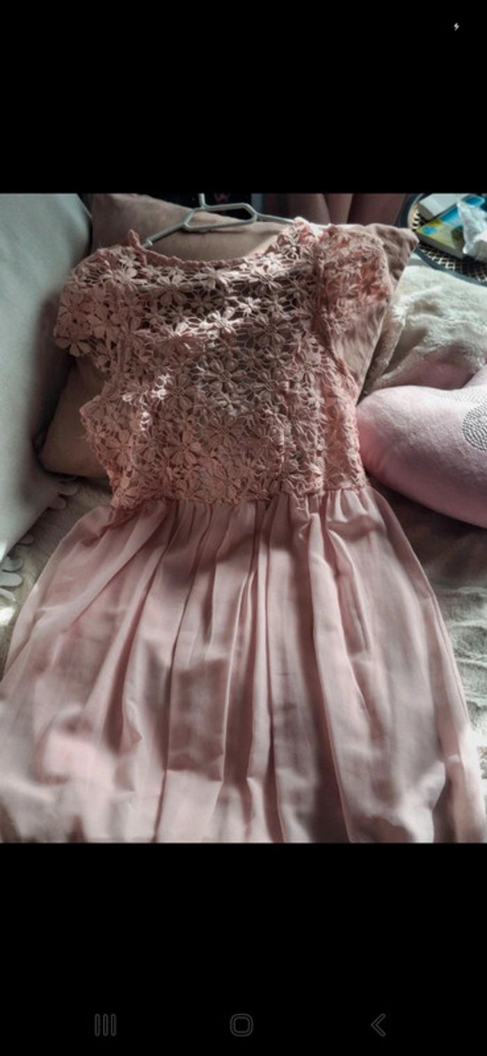 Très belle robe rose poudré dentelle et mousseline - très bon état - photo numéro 7