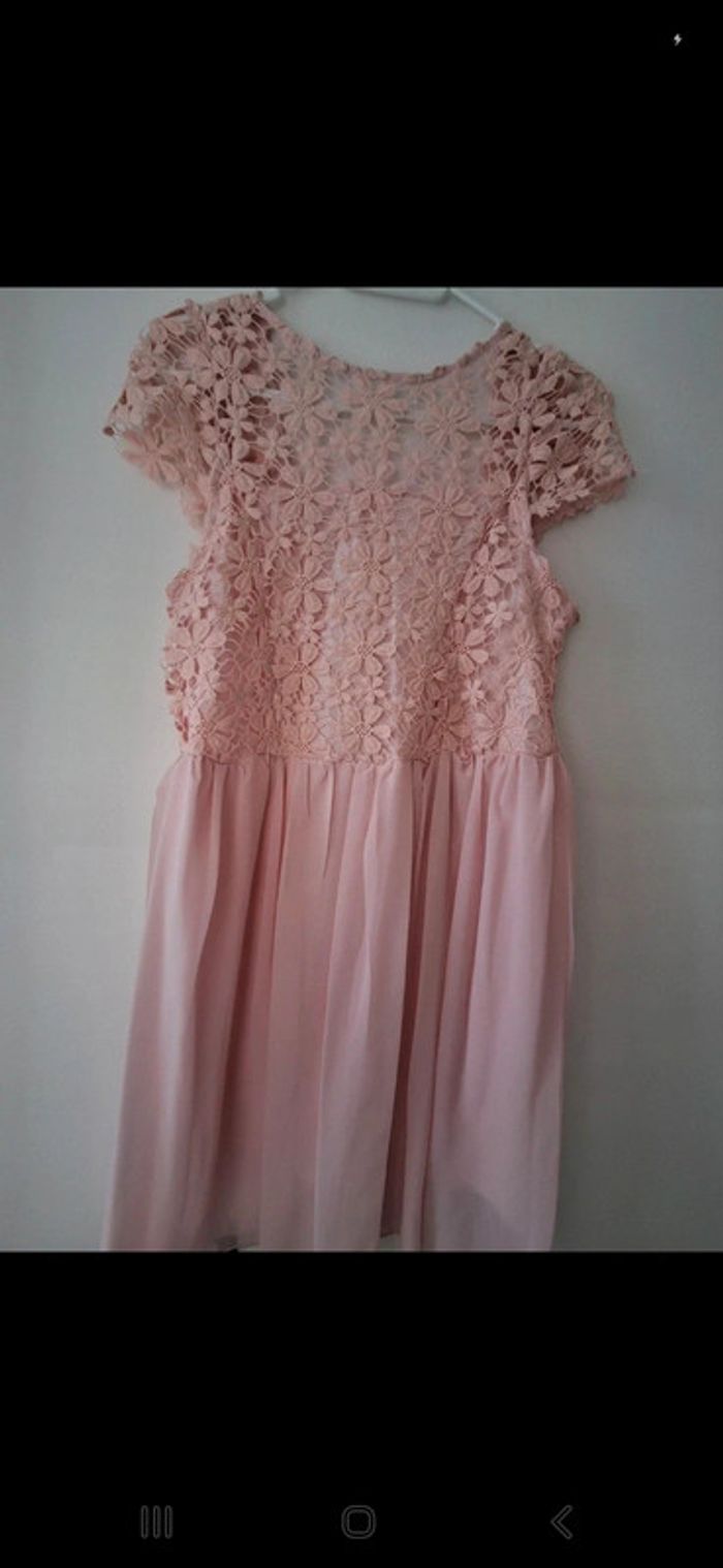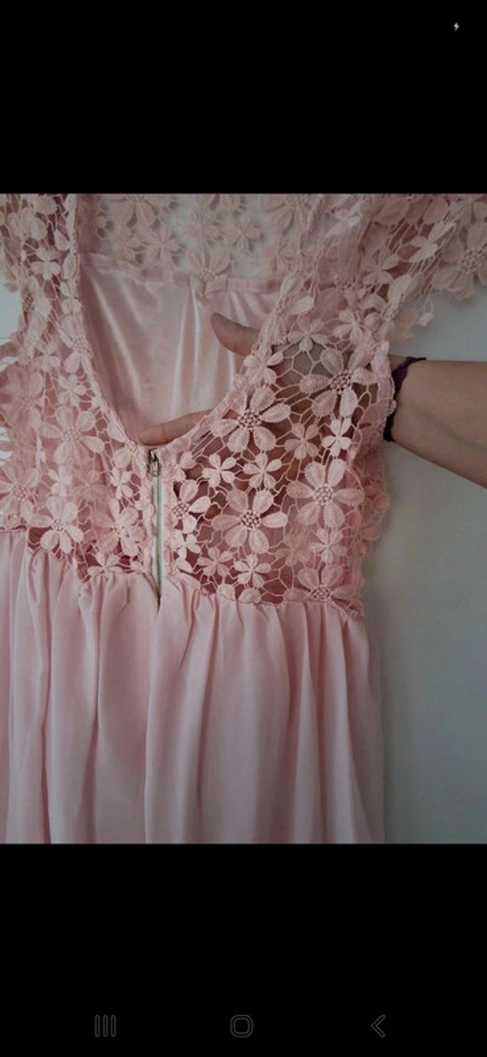 Très belle robe rose poudré dentelle et mousseline - très bon état - photo numéro 6