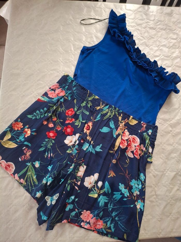 Short bleu marine fleuri - taille L - photo numéro 1