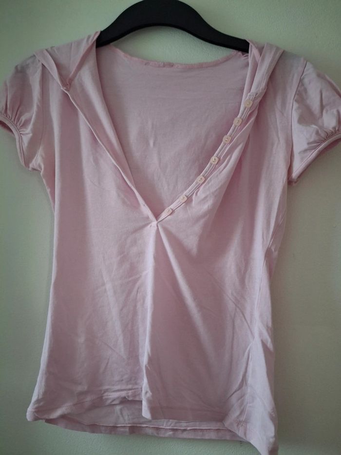 Tshirt à capuche moulant rose bonbon - taille L/XL - photo numéro 1