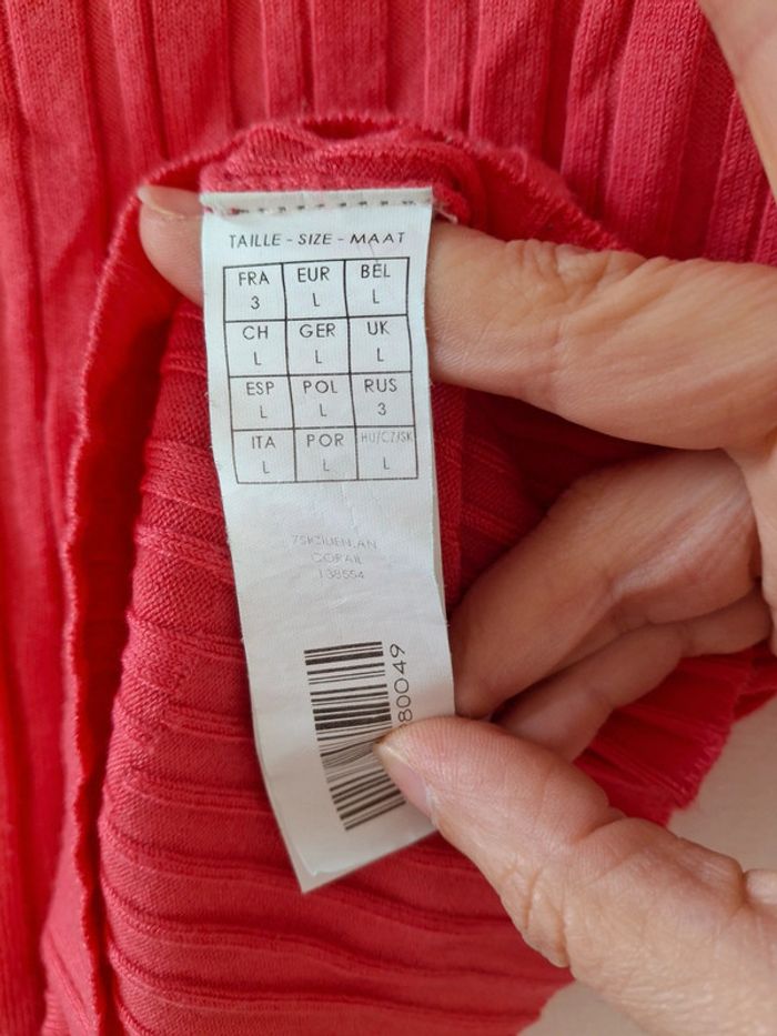 Assez près du corps, taille L vaut pour un M Neuf Encolure ronde, manches longues Couleur corail parfait pour le printemps Voir mes autres pulls/tshirt ici pour éventuellement constituer un lot et économiser sur les frais de port: #clau_d1a_pull #clau_d1a_ete #clau_d1a ✈️ envoi rapide et en petit format ❌️ je n’accepte pas les retours ni les remboursements. Merci de revendre si l’article ne vous plait pas. Marque Mim