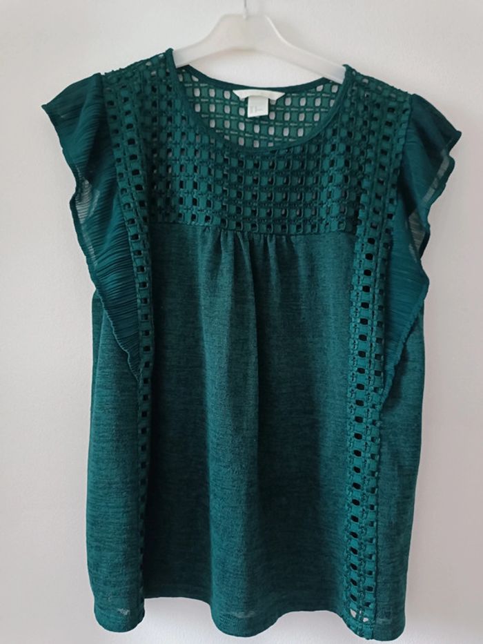 Belle blouse fluide ajourée _ vert foncé_ taille M/L