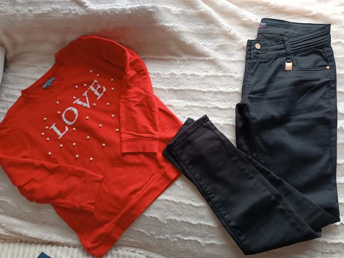 Ensemble pull rouge et jeans noir - taille M/L - photo numéro 1