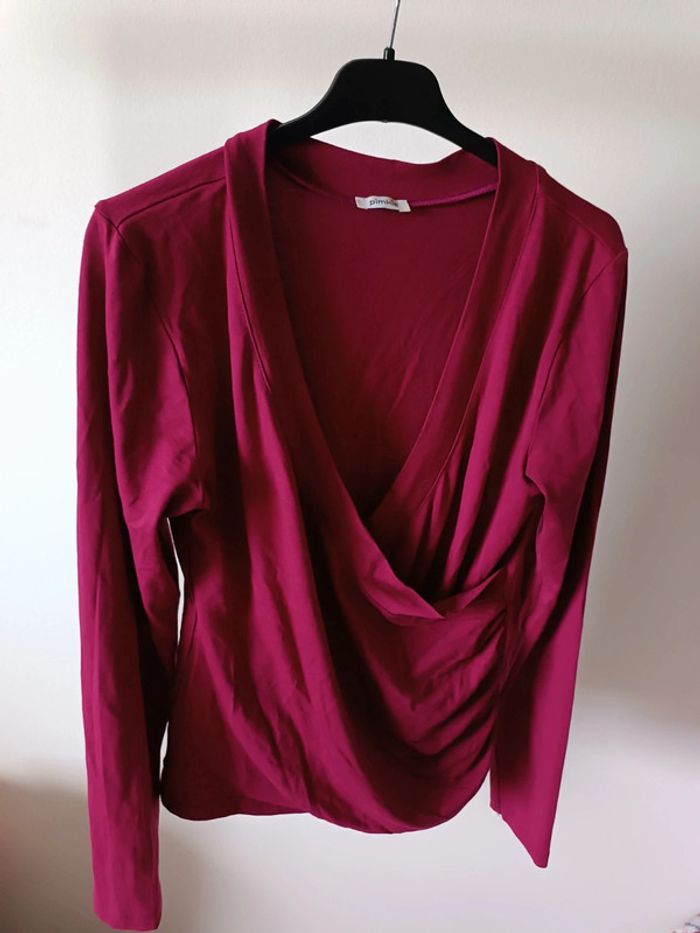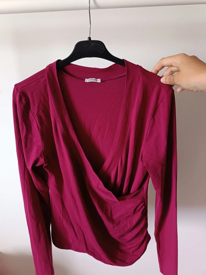 T-shirt manches longues decolleté plongeant - pourpre - taille M - Pimkie - neuf - photo numéro 1