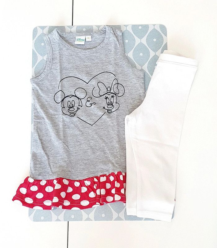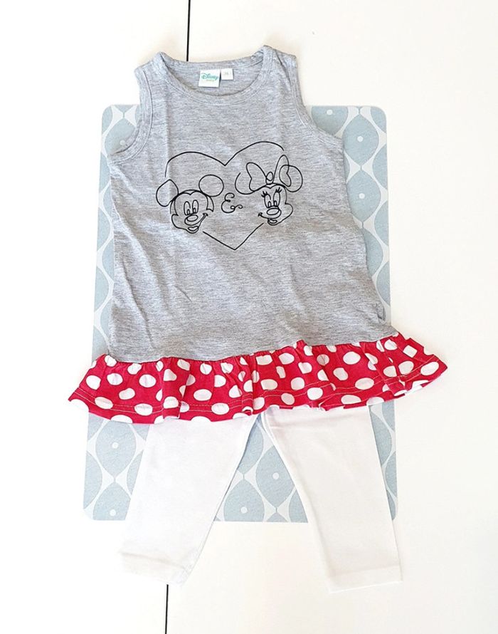 Ensemble avec robe gris/rouge Disney Minnie et legging blanc Taoe a l'oeil - Taille 12 mois