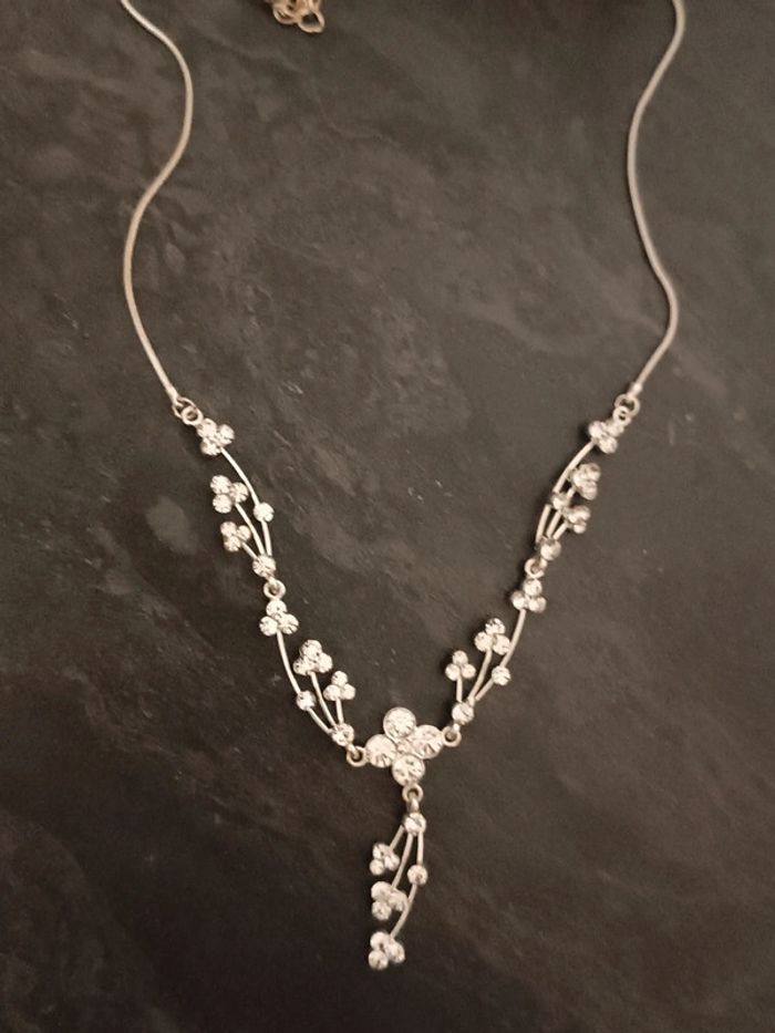 Collier avec strass argentés - neuf - photo numéro 1