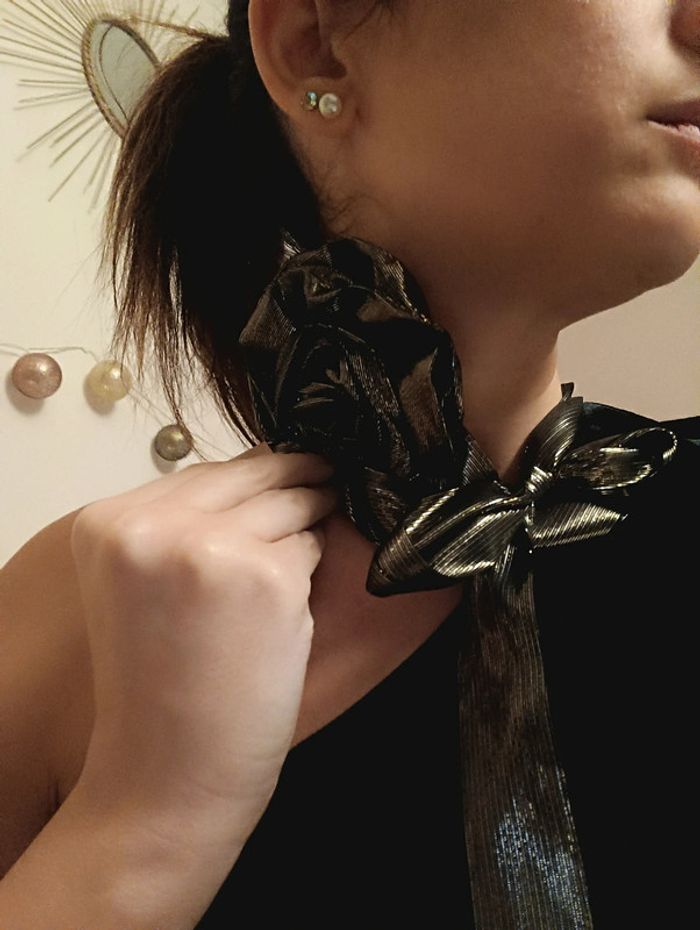 Ruban grosse fleur à mettre autour du cou Neuf Couleur bronze, tissus brillant ✅ Envoi en petit format ❌ Je n'accepte pas les retours #clau_d1a_fete #clau_d1a_accessoires #clau_d1a