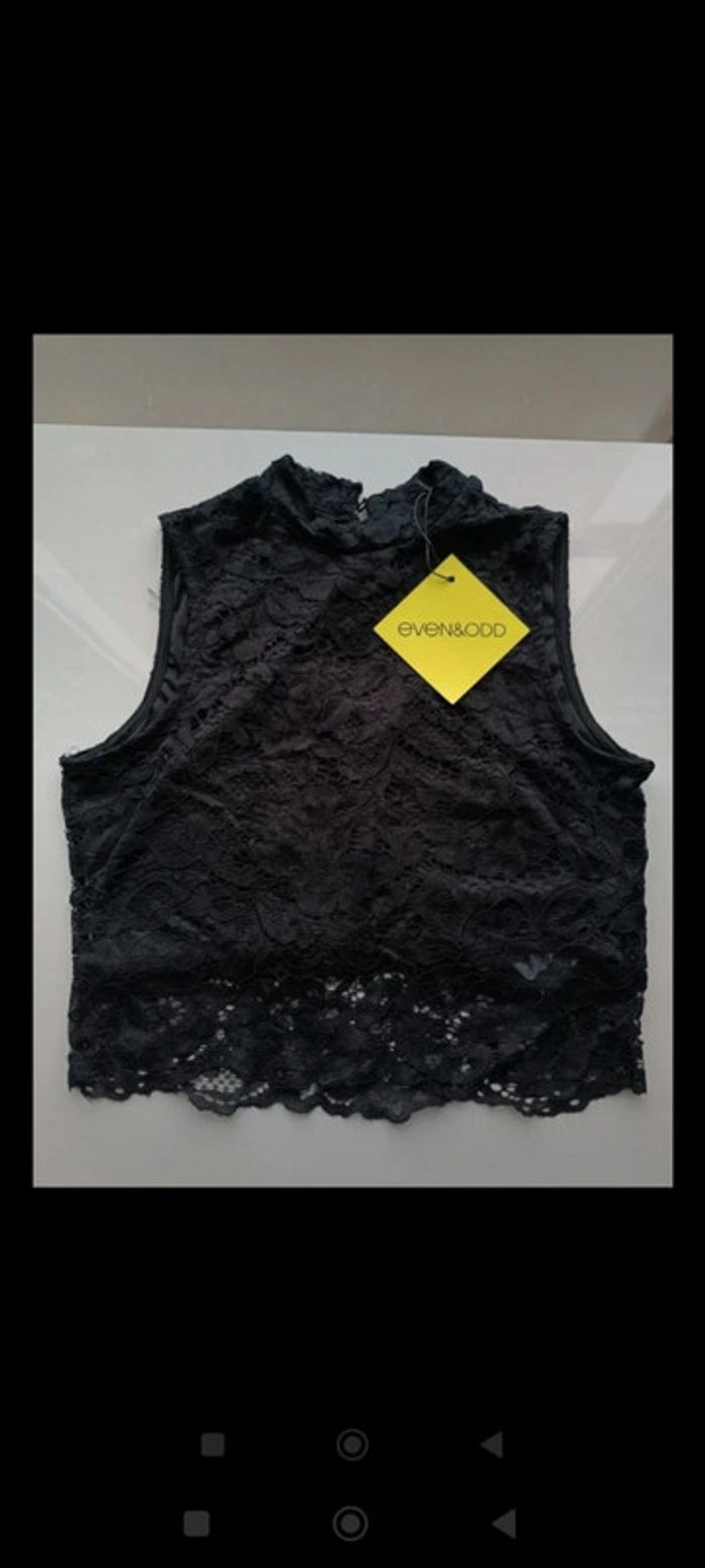 Crop top noir en dentelle pour les fêtes Taille S/M Neuve avec étiquette Marque Even&Odd ⚠️ Prix souhaité 8€ minimum! ne partira pas pour moins! Neuf avec étiquette !!⚠️ #clau_d1a #clau_d1a_soiree #clau_d1a_taillem #clau_d1a_ete #clau_d1a_hiver 📨 Envoi rapide et en petit format ⛔ Je n'accepte pas les retours, échanges ou remboursements. Merci de revendre l'article si celui-ci ne vous plaît/convient pas