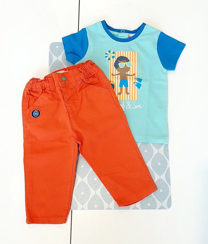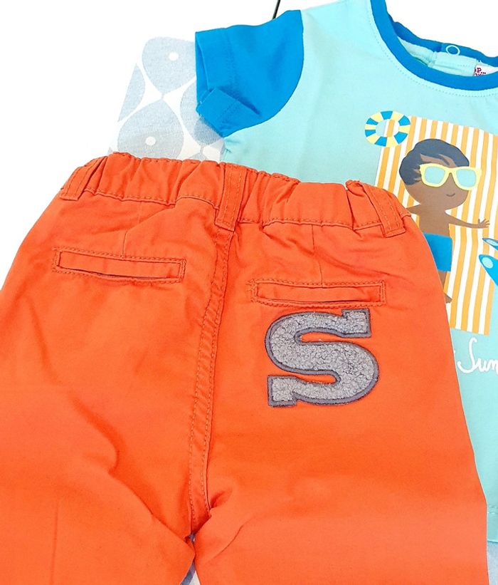 Ensemble Du Pareil au Meme avec pantalon orange et t-shirt turquoise - Taille 6 mois
