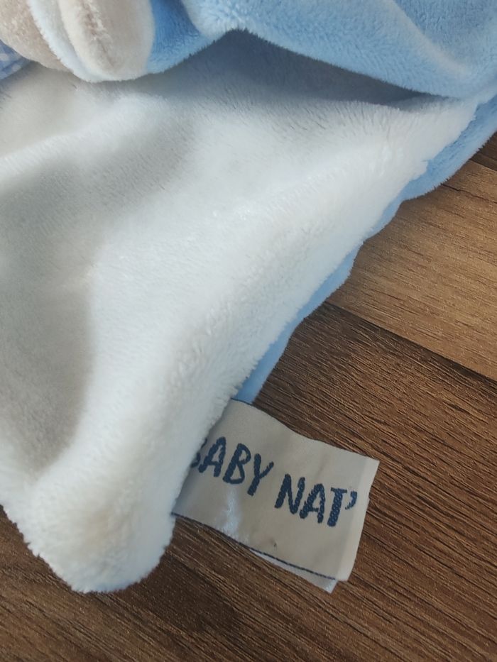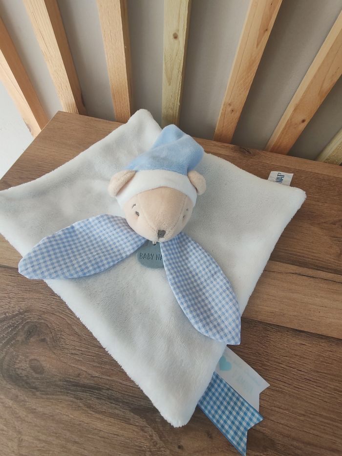 Baby'Nat - Layette - Doudou plat ours blanc bleu vichy 25 cm environ Tbe Tout doux 9.90 euros Envoi en relais