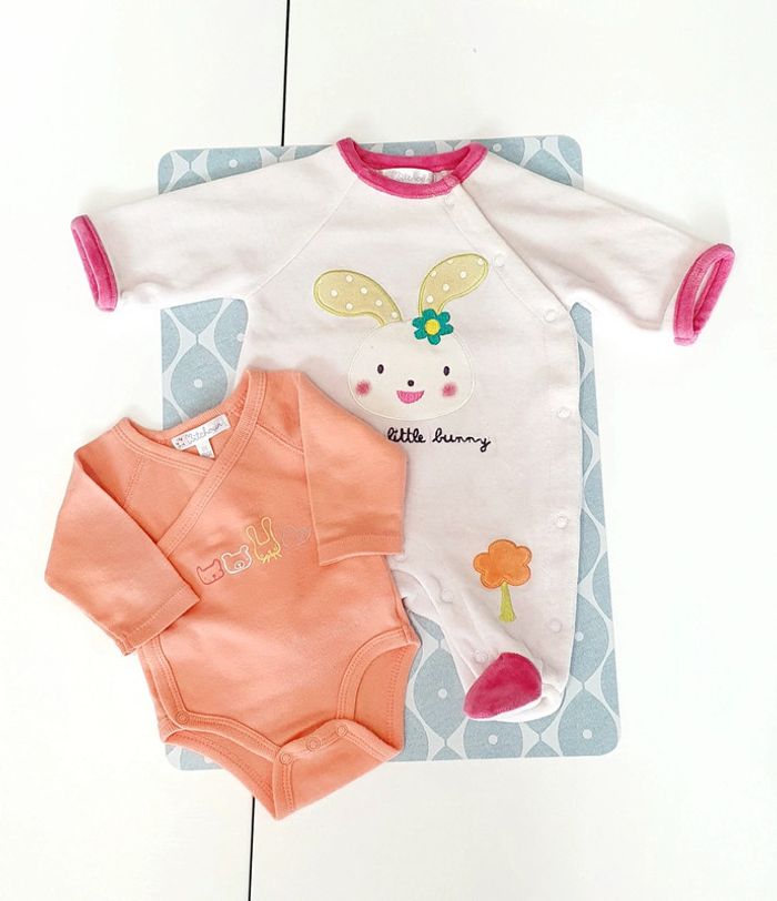 Pyjama velours rose + Body ML orange Kitchoun - Taille naissance (50 cm)