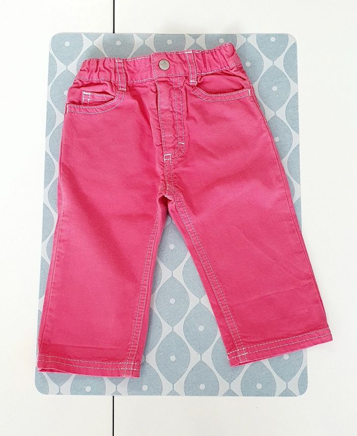 Ensemble Petit Bateau avec body ML rose clait col claudine et jeans rose - Taille 6 mois
