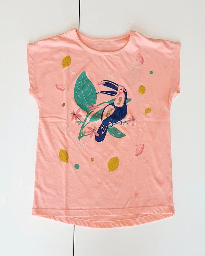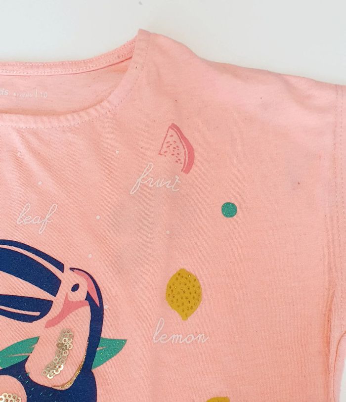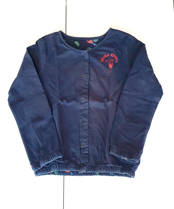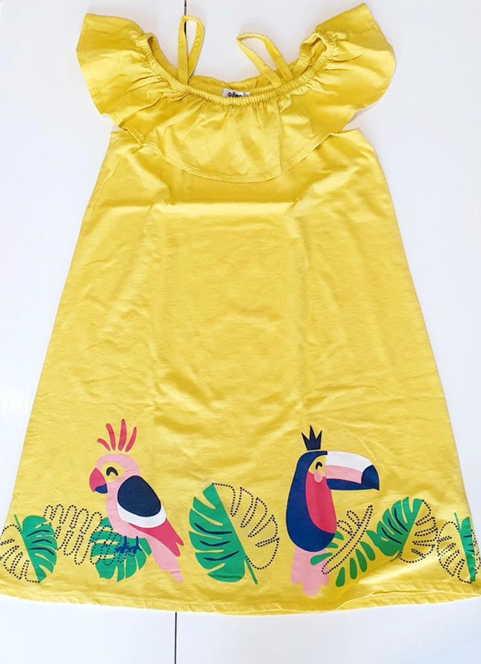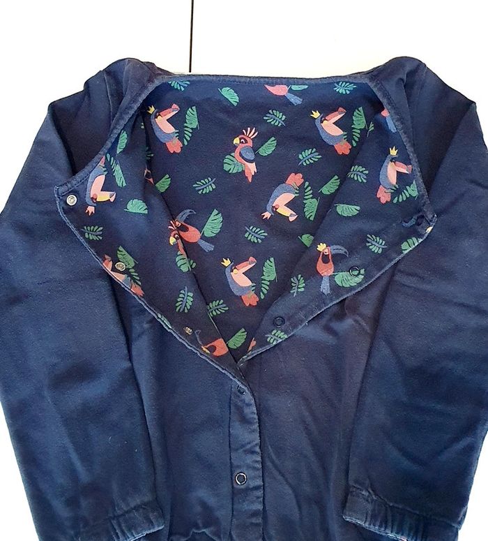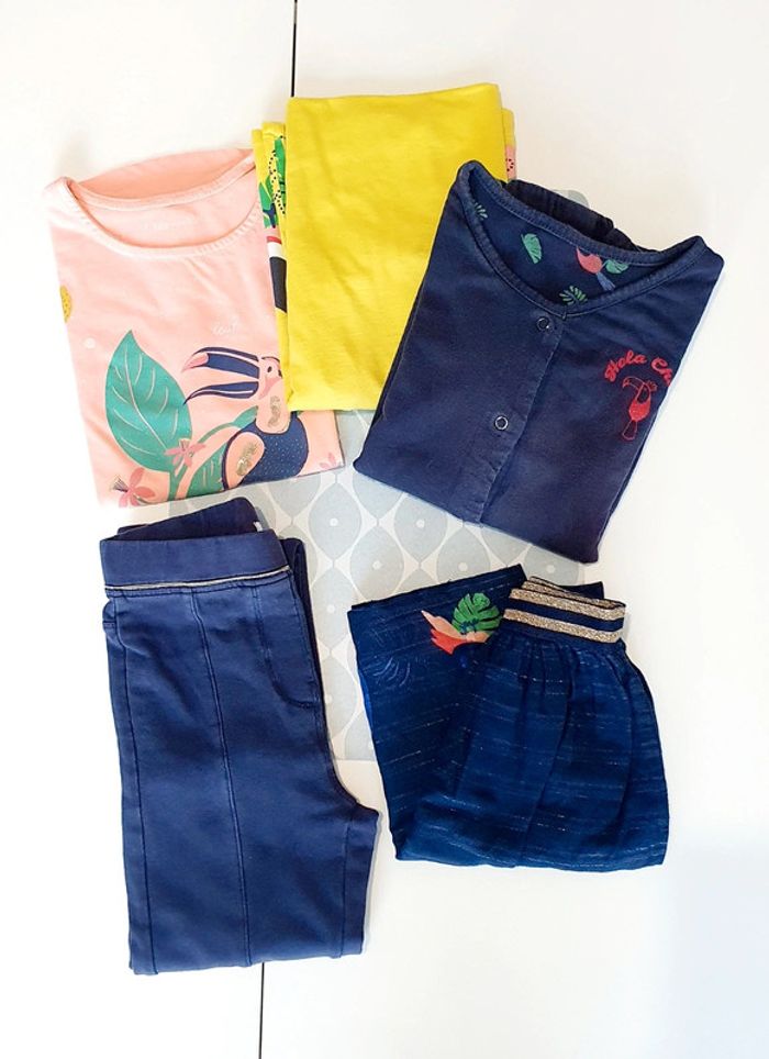 Ensemble Gemo avec veste marine reversible, t-shirt saumon (taches), legging marine, robe jaune (taches) et jupe marine - Taille 10 ans