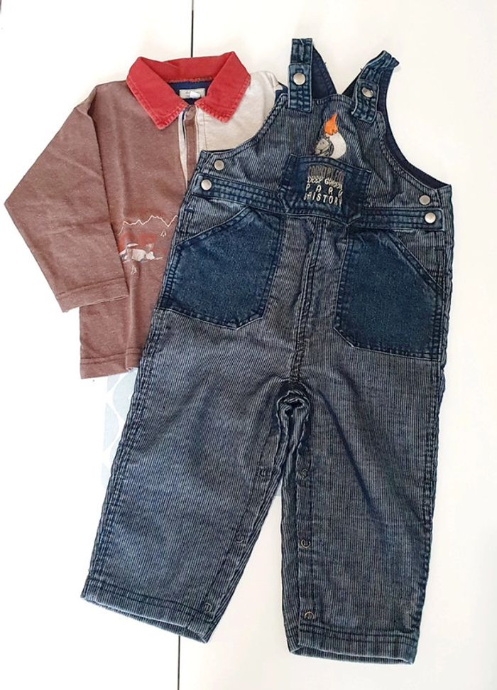 Ensemble avec salopette en velours noir Tout Compte Fait et haut ML marron/beige/orange Catimini - Taille 18 mois