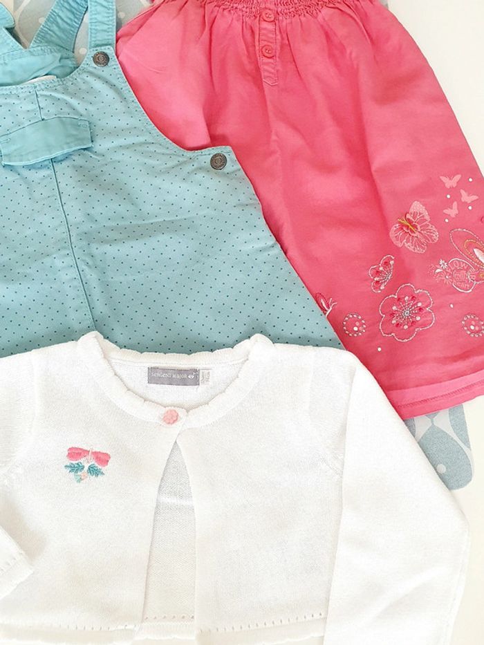 Ensemble avec robe bleu clair Obaibi, robe rose Les bebes sont comme ca ! et bolero blanc Sergent Major - Taille 12 mois