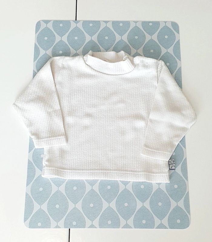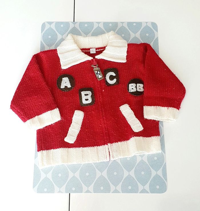 Ensemble avec salopette en velours rouge, haut ML col montant blanc et gilet zippé rouge/crème - Taille 6 mois
