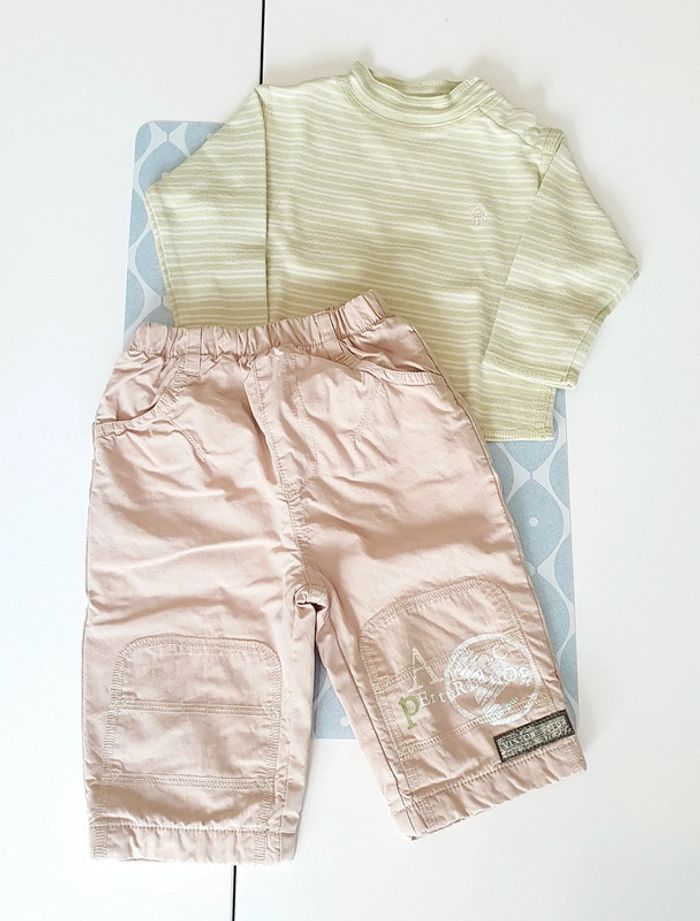 Ensemble Obaibi avec pantalon beige et haut ML col montant vert pomme - Taille 6 mois