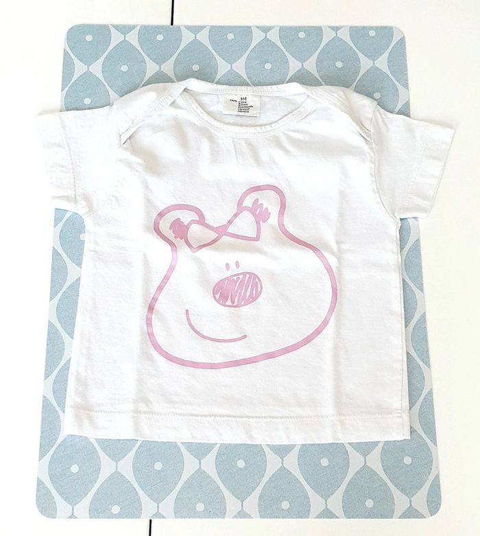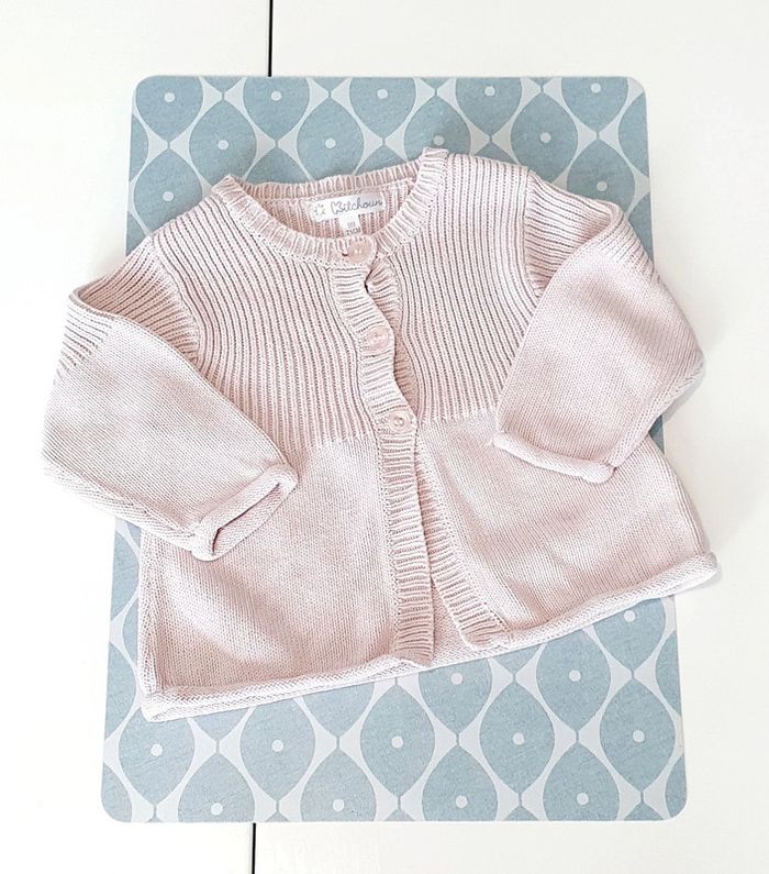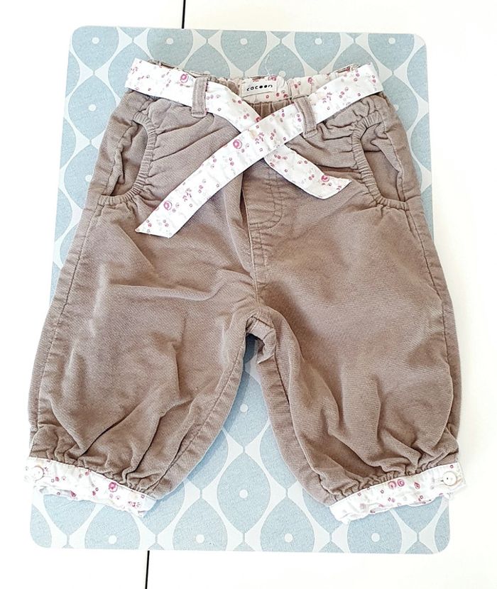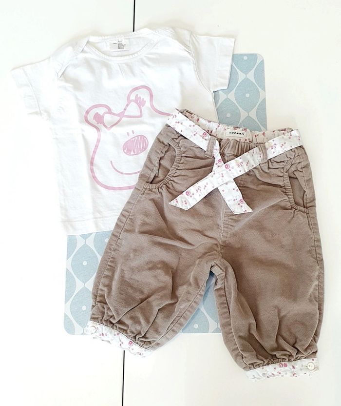 Ensemble avec pantalon en velours beige/taupe Cocoon, gilet rose Kitchoun et t-shirt blanc/rose - Taille 9 mois