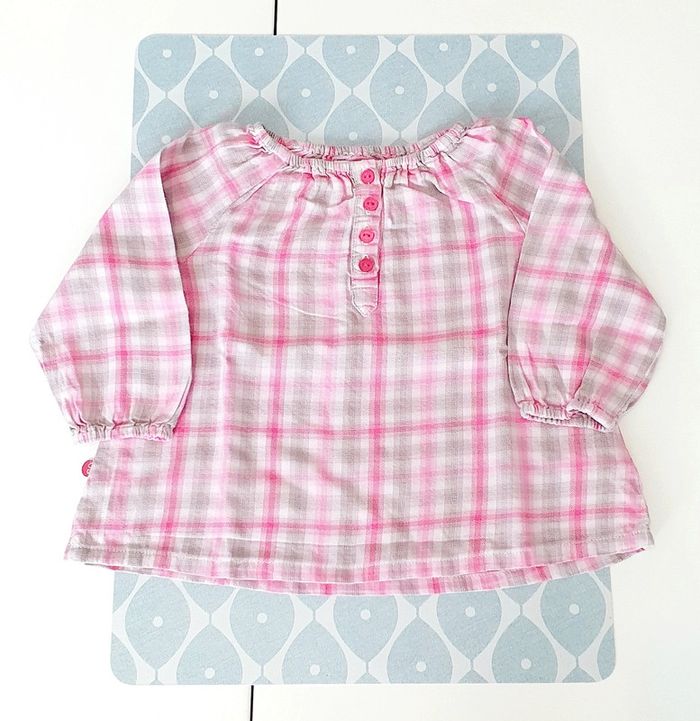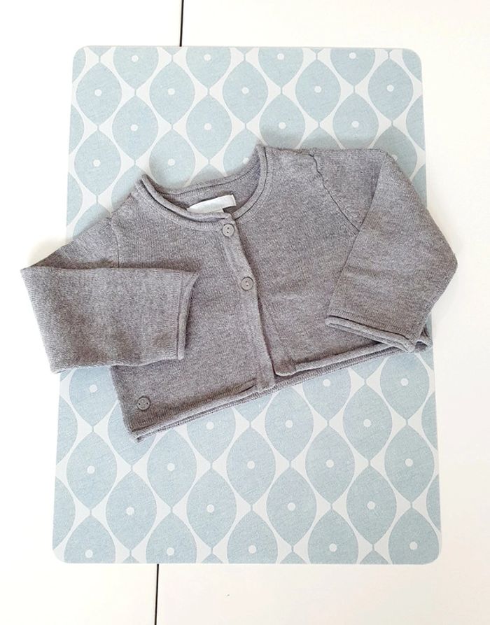 Ensemble Obaibk avec blouse ML rose/gris, bolero gris, robe en jeans et legging rose pale - Taille 6 mois