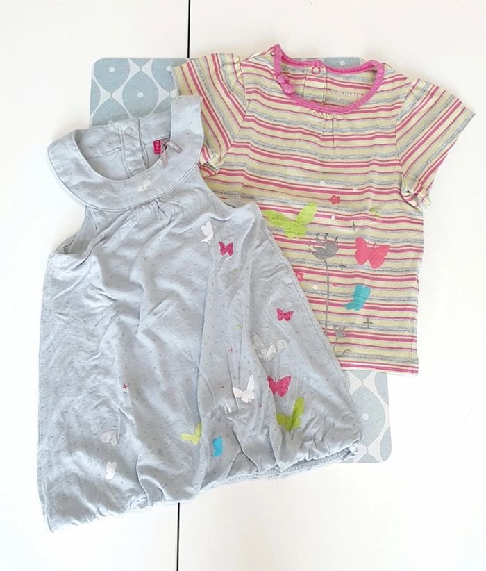 Ensemble Orchestra avec robe grise brillante et t-shirt rayé rose/vert pomme - Taille 18 mois