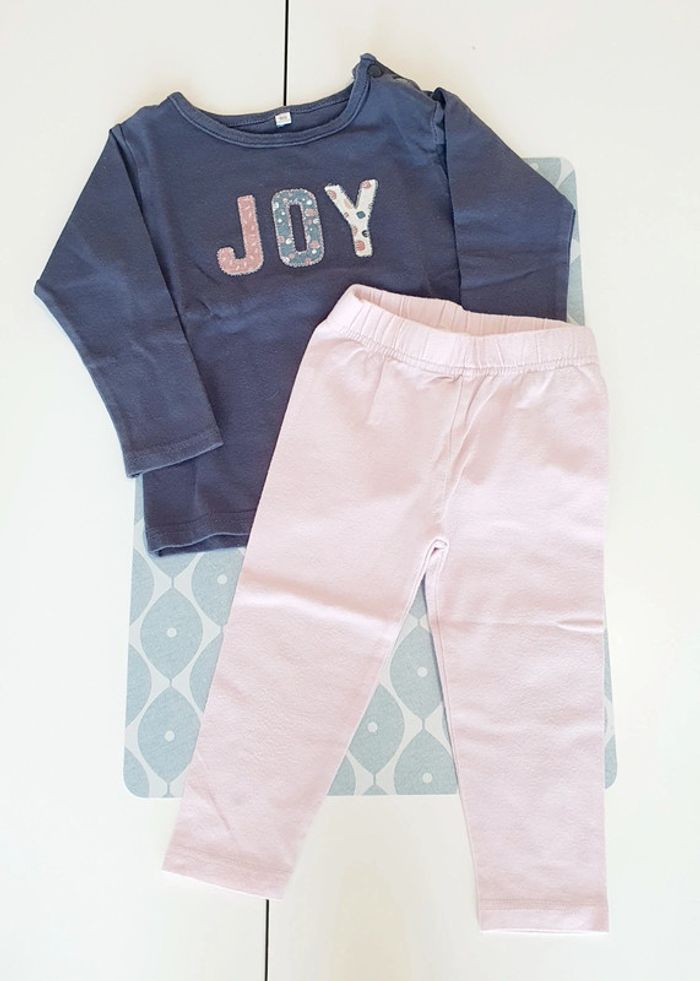 Ensemble avec haut ML gris foncé et legging rose pale - Taille 18 mois (80 cm)