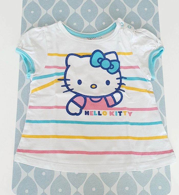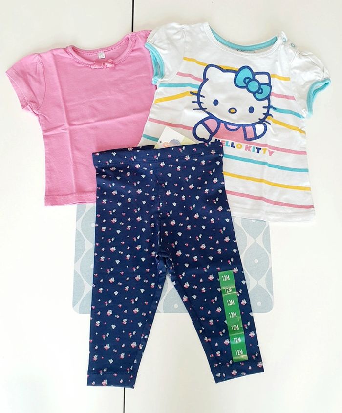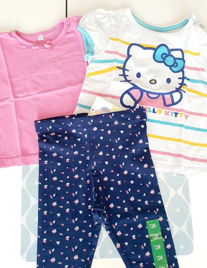 Ensemble avec t-shirt rose, t-shirt Hello Kitty et legging marine Mots d'enfants (neuf avec etiquette) - Taille 12 mois