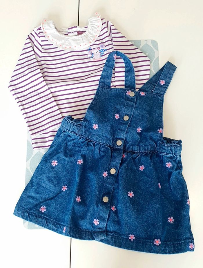 Ensemble Sergent Major avec robe en jeans et haut ML rayé blanc/violet - Taille 12 mois