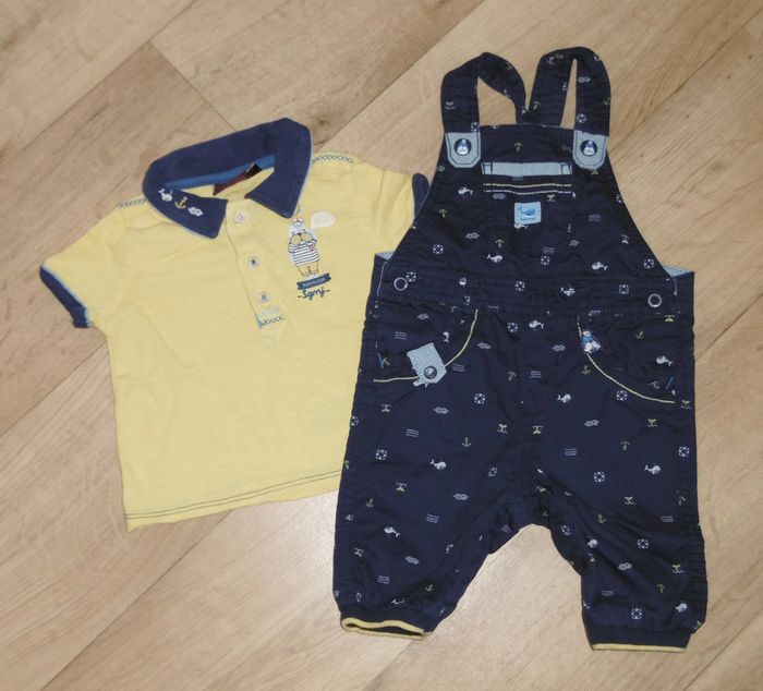 Ensemble Sergent Major composé d'une salopette et d'un t-shirt (taille 9 mois) et d'un pull (taille 6 mois)