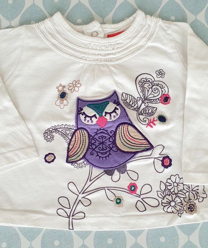 Ensemble avec haut ML blanc Tissaia et robe en jeans Mexx - Taille 6 mois