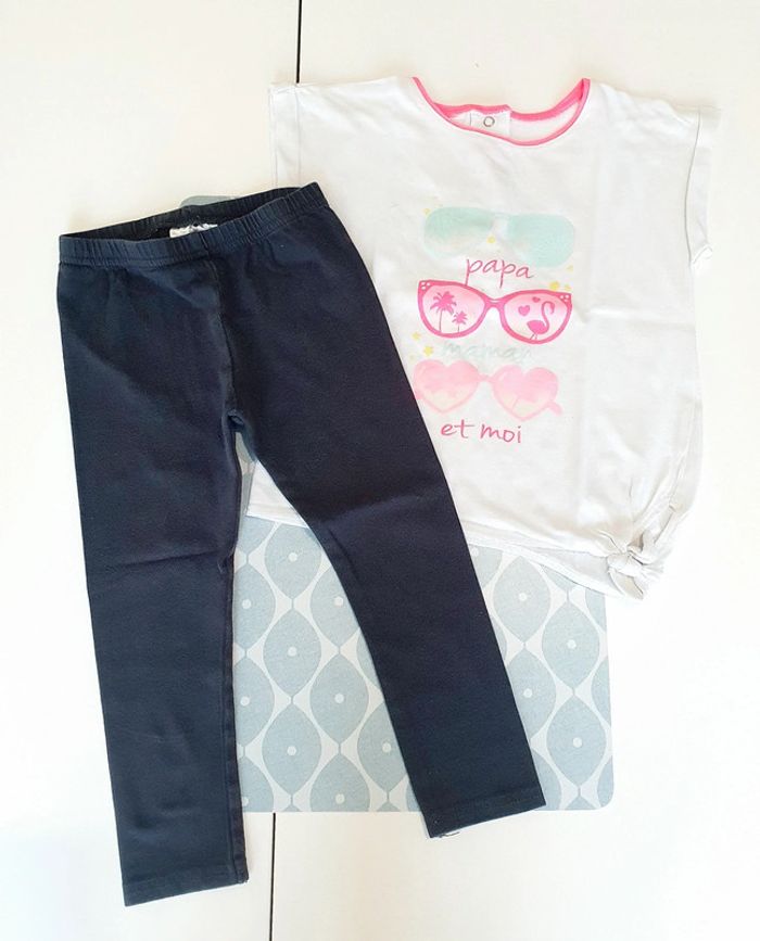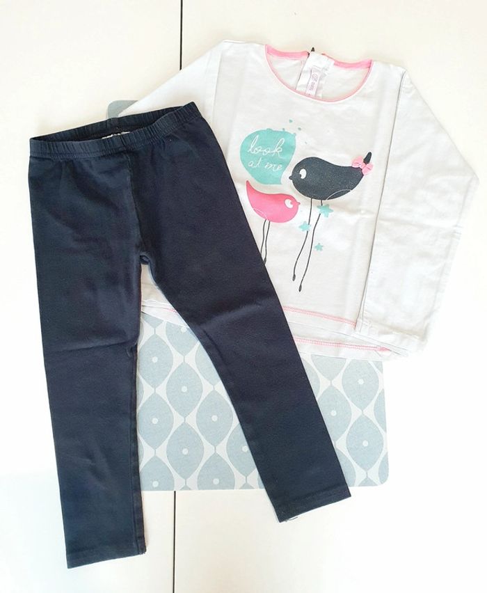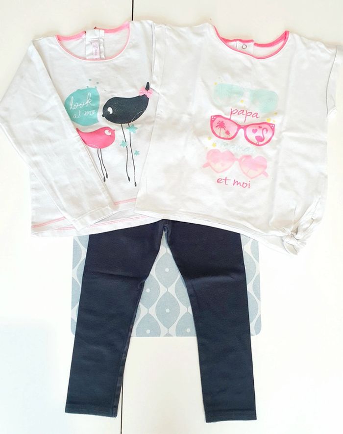 Ensemble avec t-shirt + haut ML blanc/rose/turquoise Gemo et legging gris foncé - Taille 24 mois