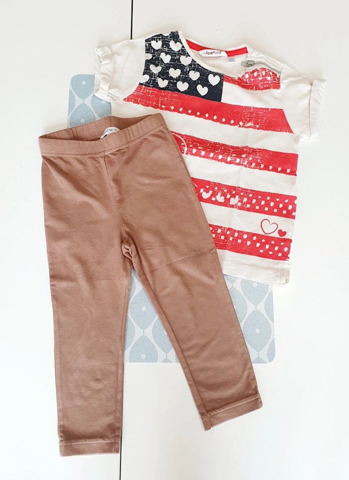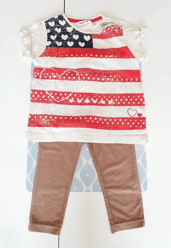 Ensemble Kimadi avec legging velours camel et t-shirt blanc/rouge/marine - Taille 24 mois