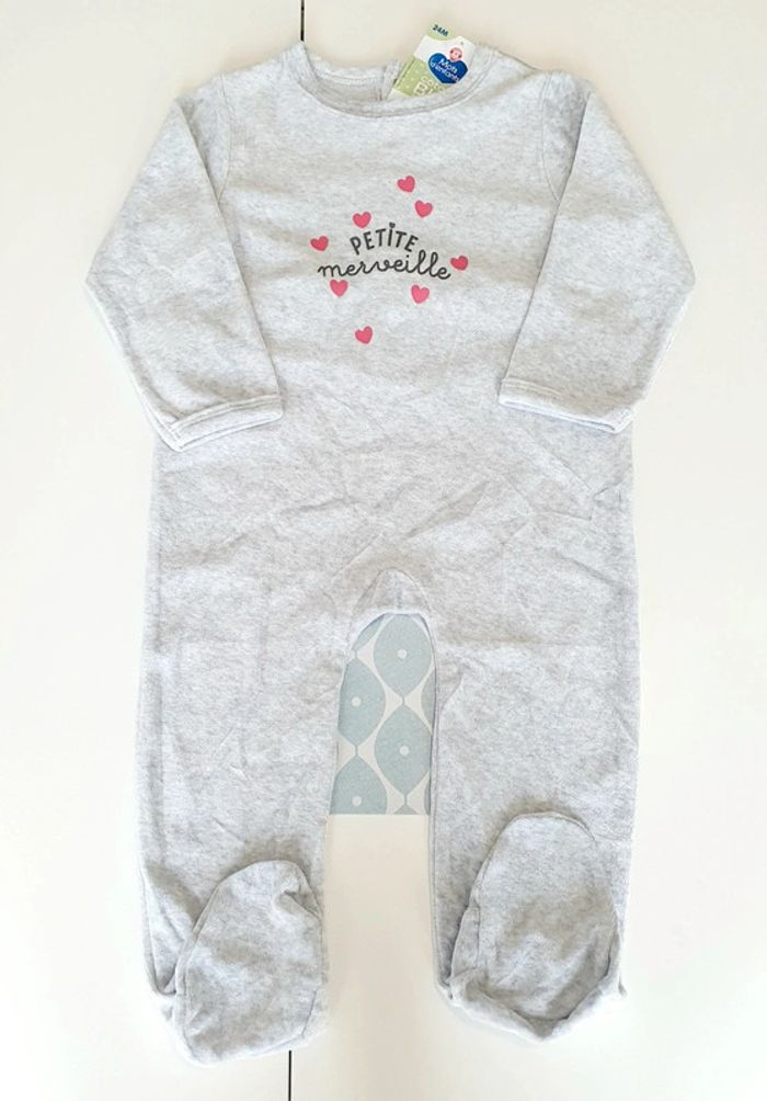 Pyjama velours gris Mots d'enfants - Taille 24 mois