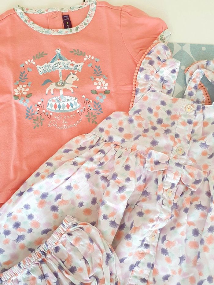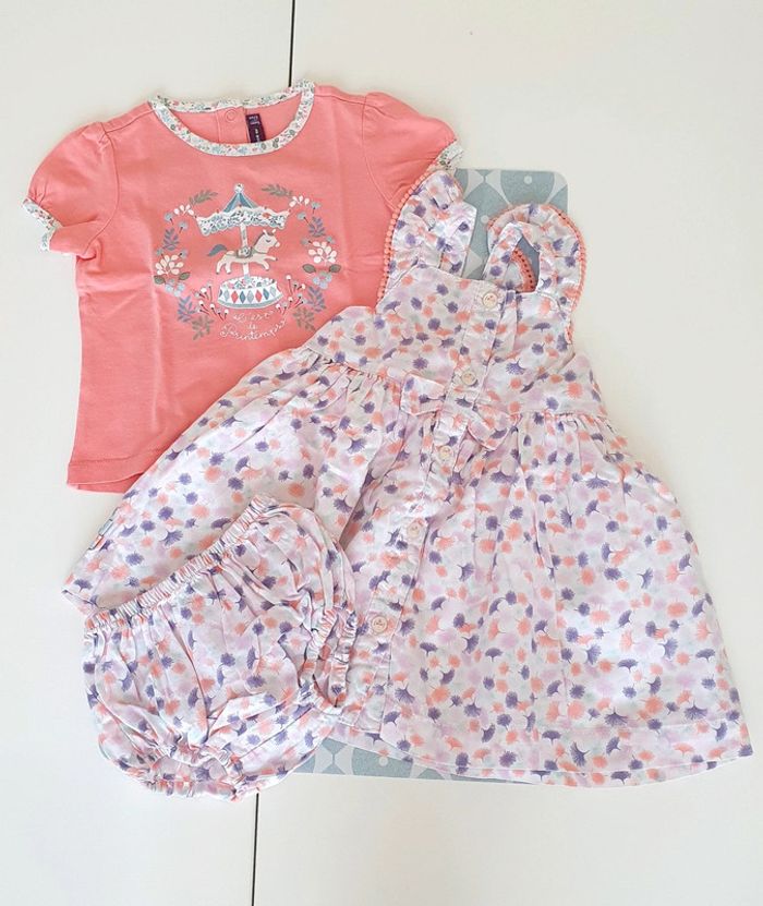Ensemble Sergent Major avec robe et bloomer blanc/lila/ rose + t-shirt rose/saumon - Taille 6 mois